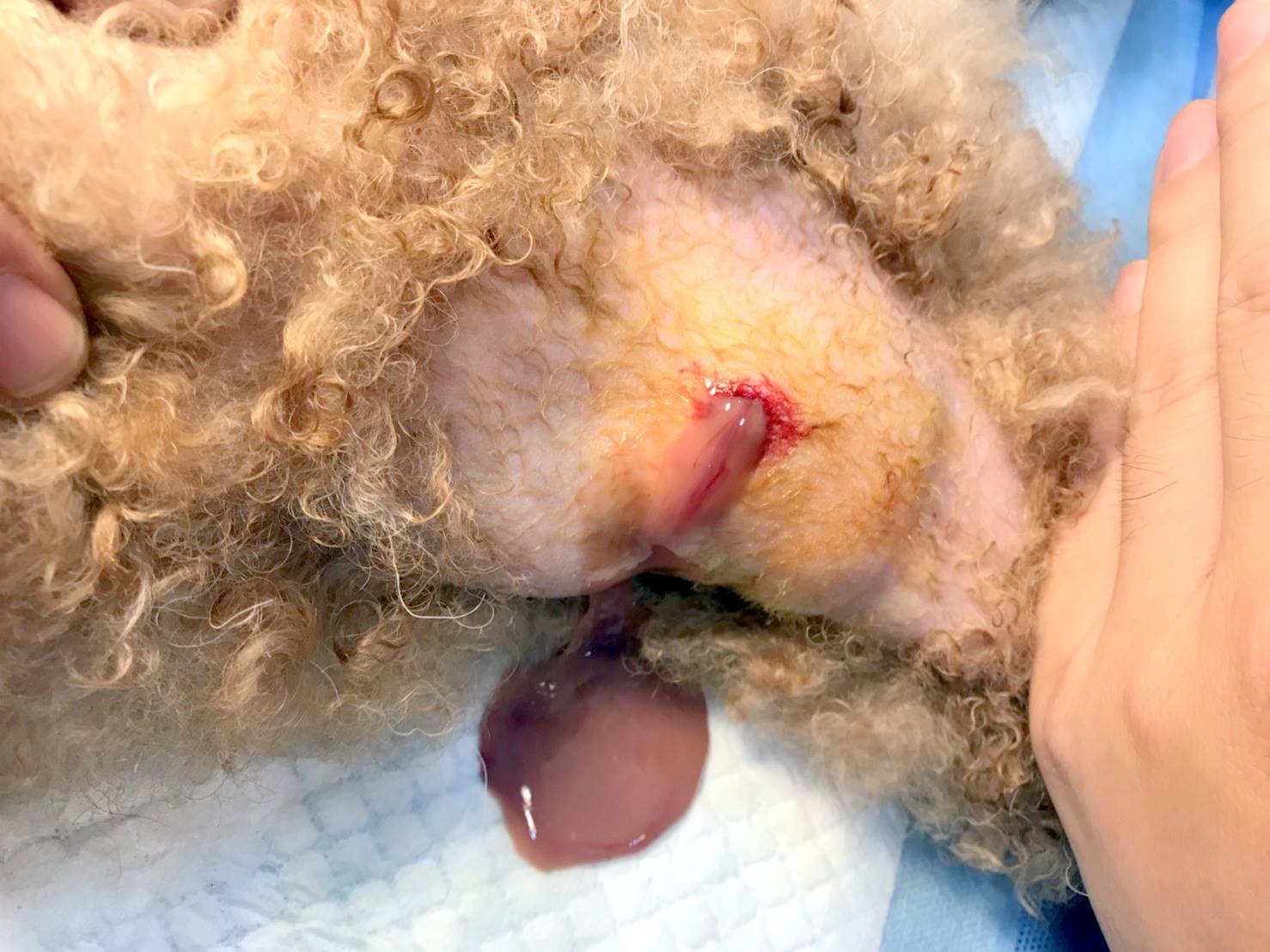 接著脖子處出現了膿腫可能是由於口腔潰瘍引發細菌感染,經過超音波檢查,果不其然發現裡面是膿血,因此趕快給予引流,讓膿血出來,狗狗第二天就好多了。